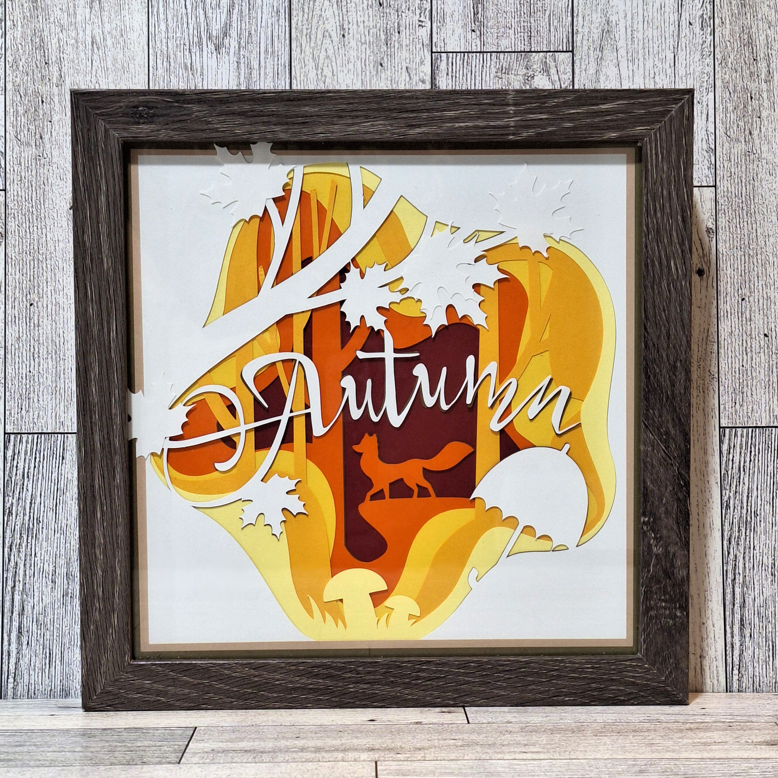 Embrace the cozy charm of autumn with this 3D Layered Paper Art Shadowbox featuring a cute fox in layers of oranges and browns. This enchanting piece beautifully captures the essence of fall, bringing warmth and seasonal spirit to your home decor.