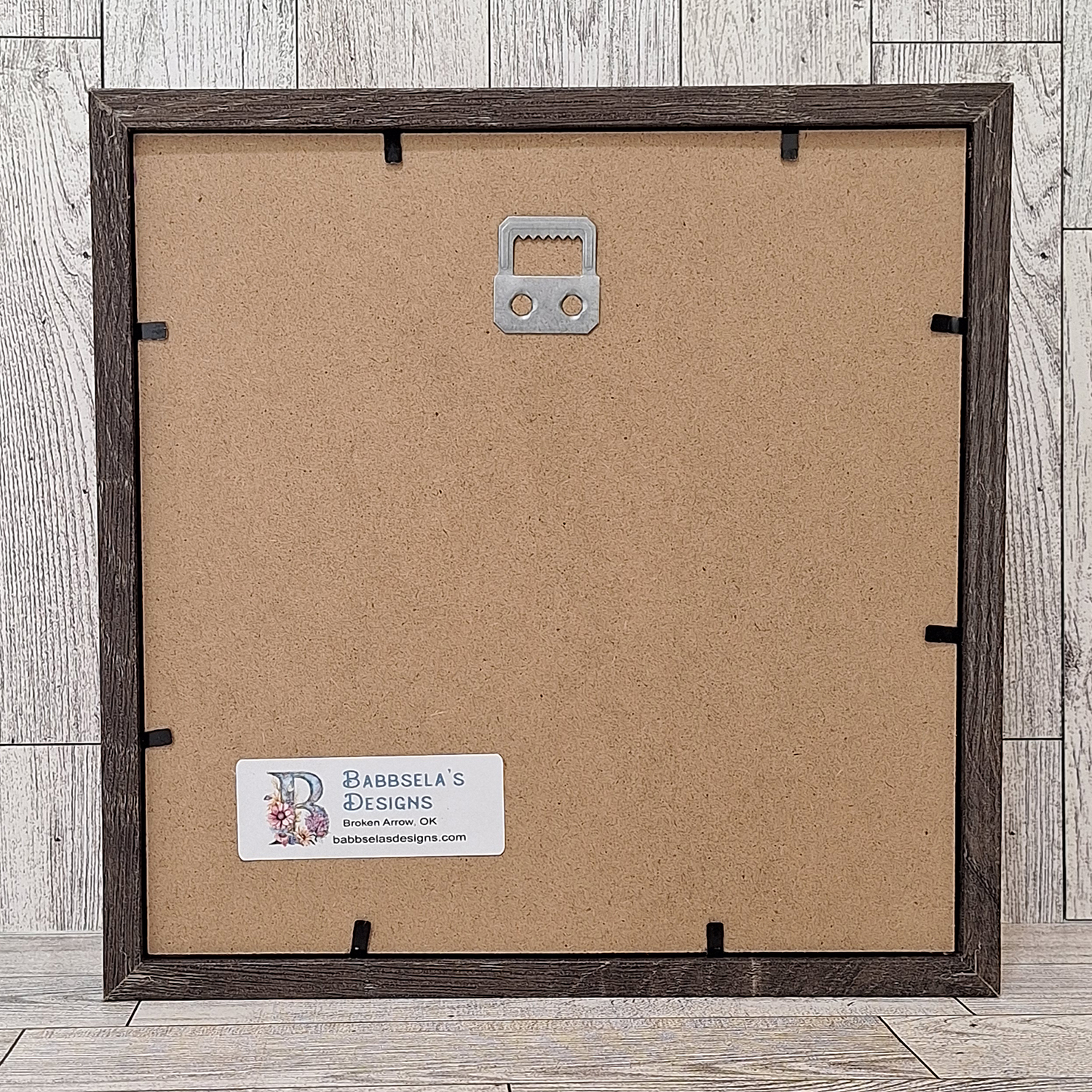 Solid manufactured wood frame with glass front.