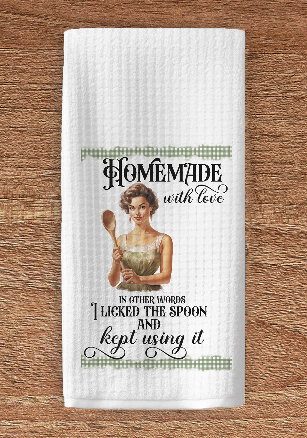 Homemade With Love Licked the Spoon Funny Kitchen Towel